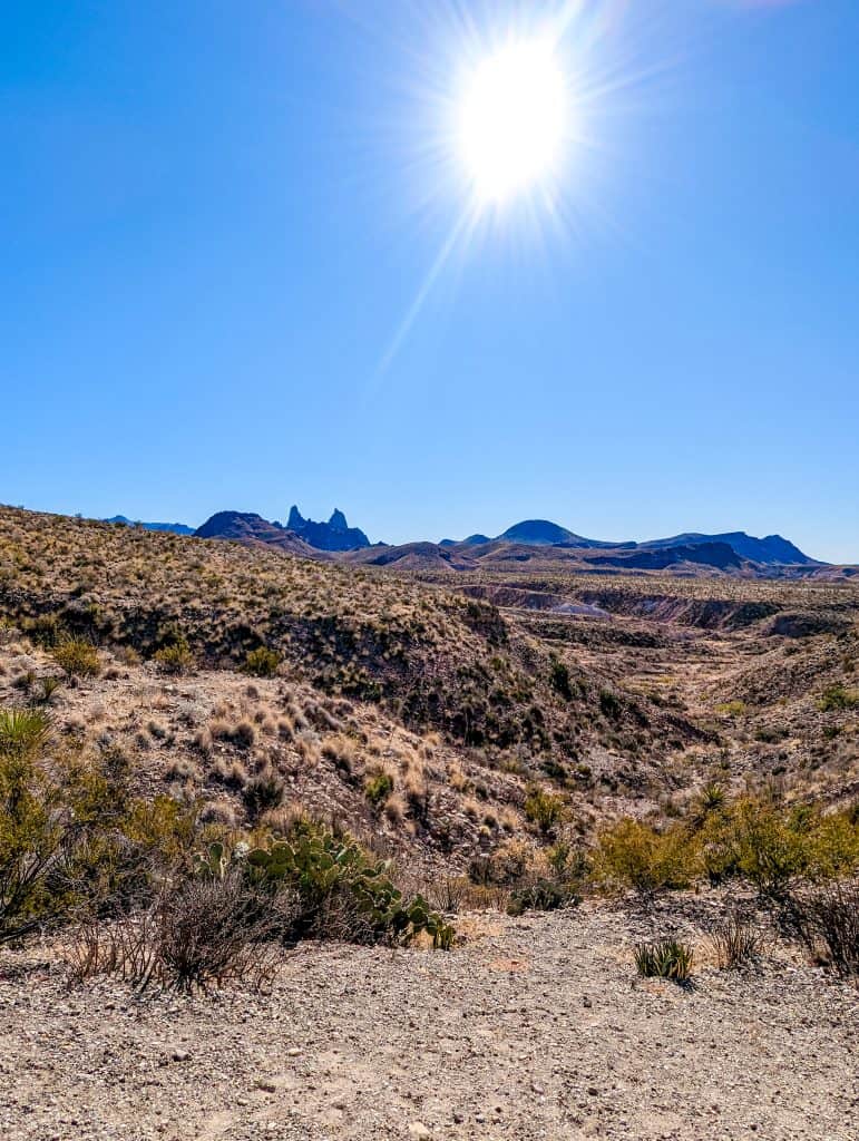 For day 2 you’ll want to eat breakfast and pack up camp a bit early, depending on how far your drive back home is. Today we’re viewing overlooks and hiking. We packed up and left our site at 8 am then went back to Panther Junction Visitor Center to use the restroom and get more gas.